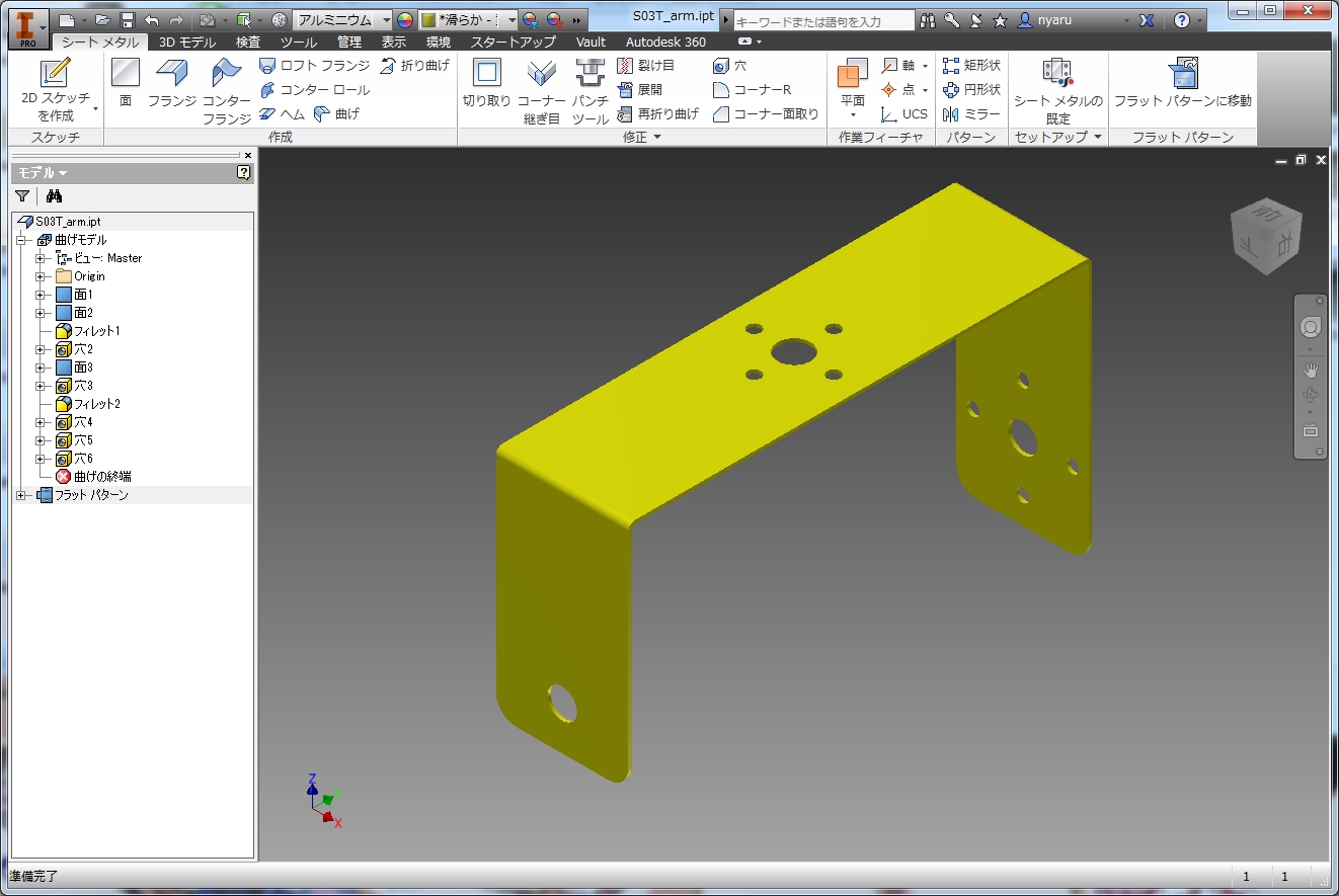 サーボブラケットとアームですが、新規作成の時にシートメタルを選択しています。