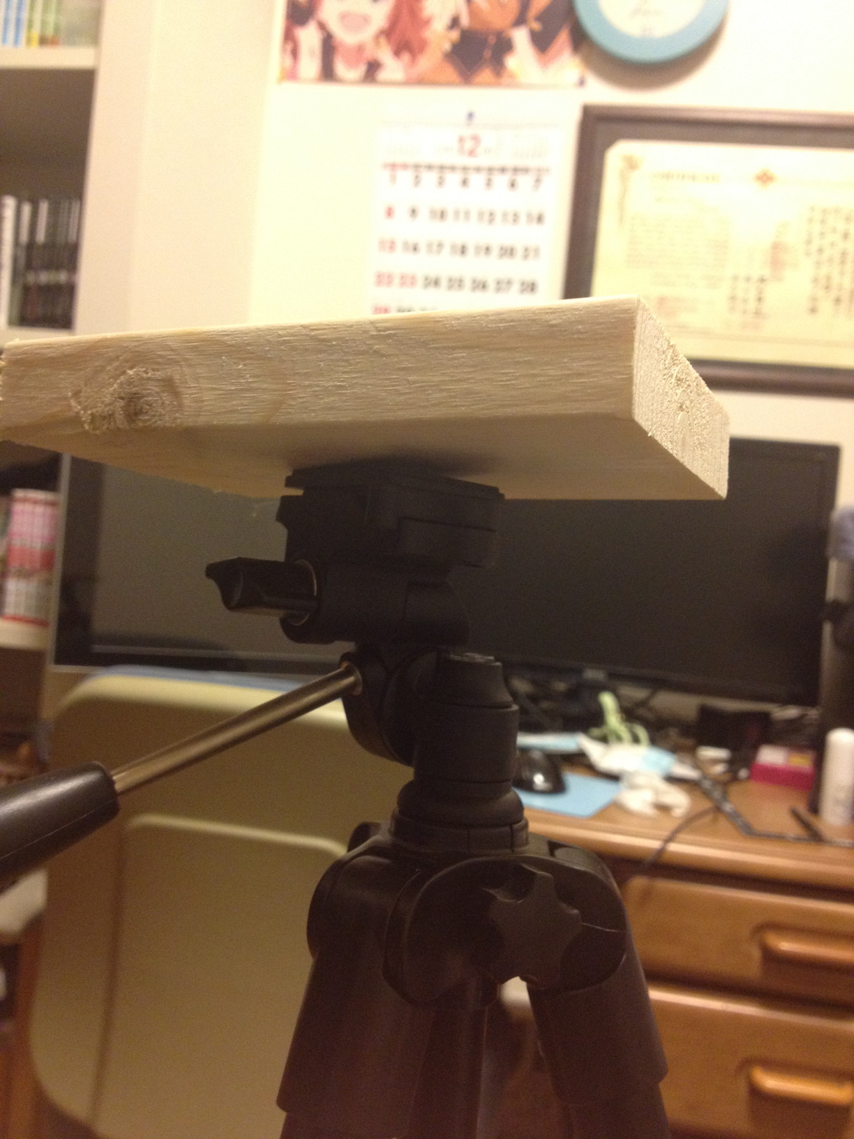 三脚につけてみると浮いてる・・・。もうちょっと穴を深くするかグルーの量を減らせばよかったなーと思いました。