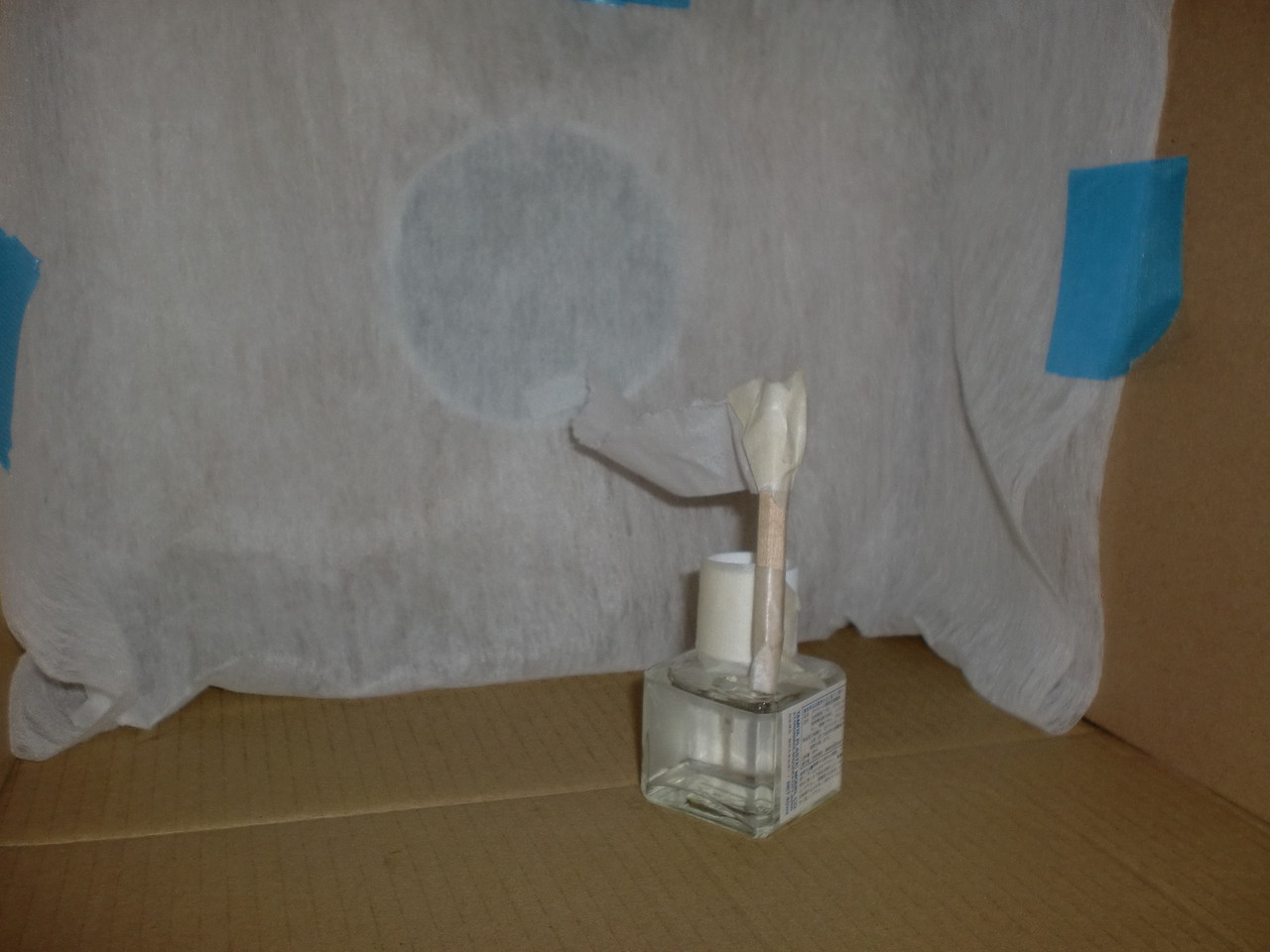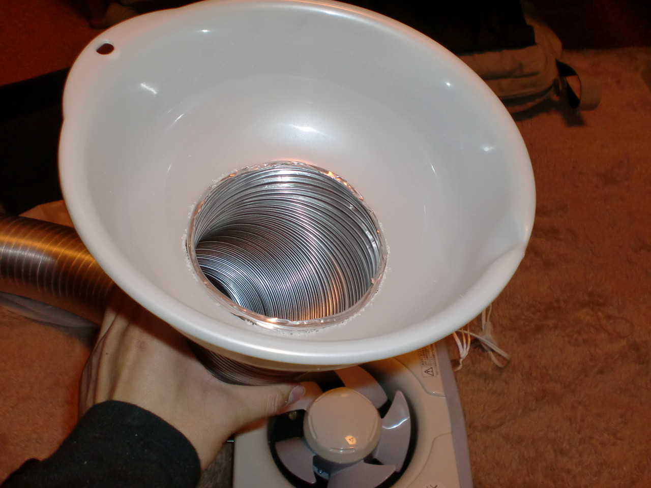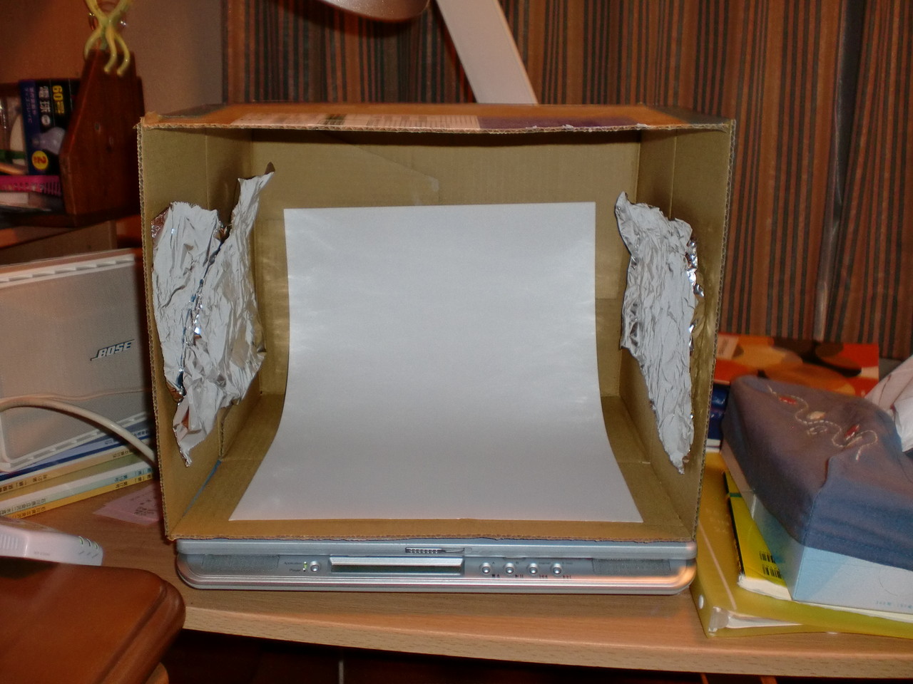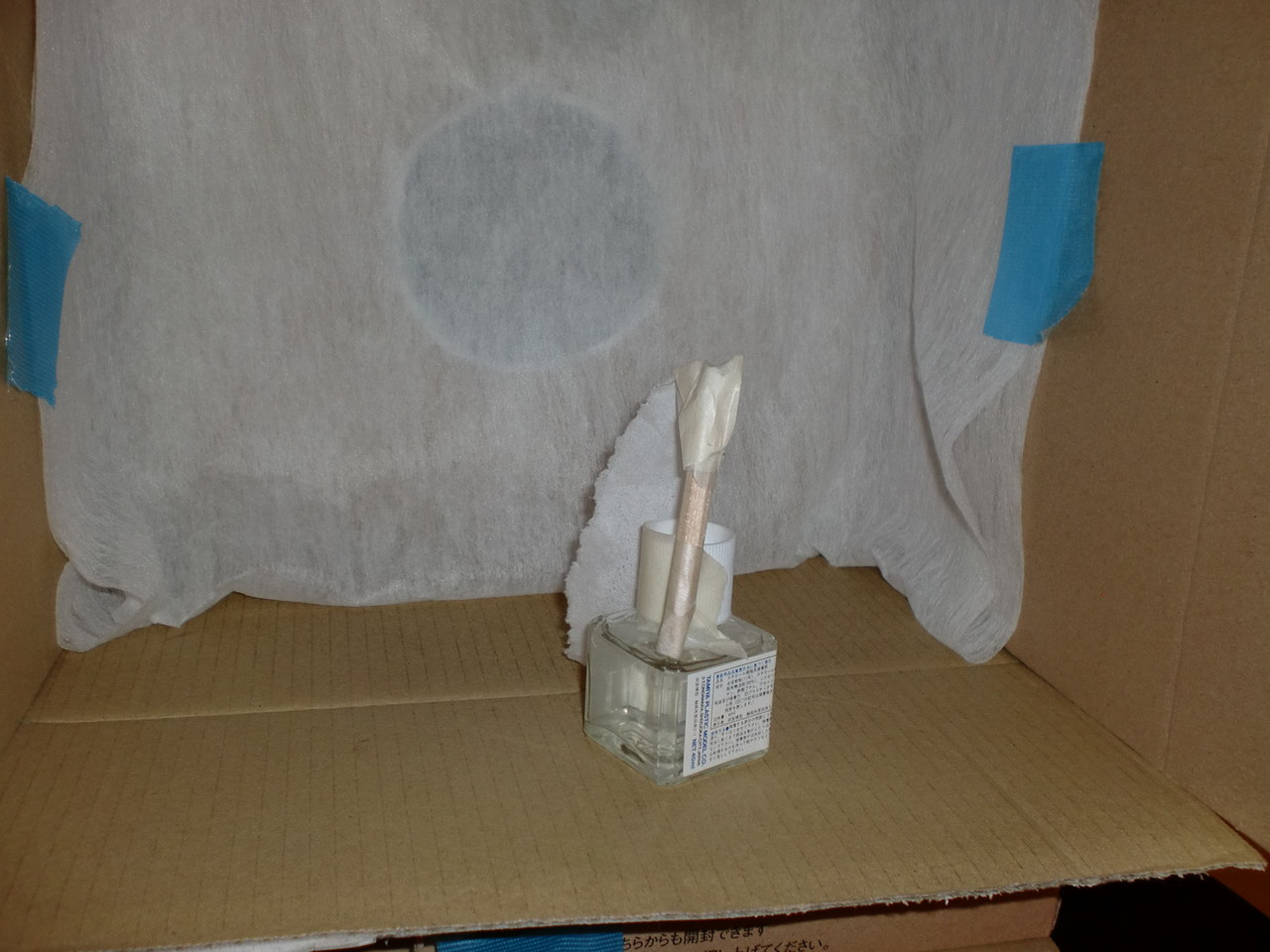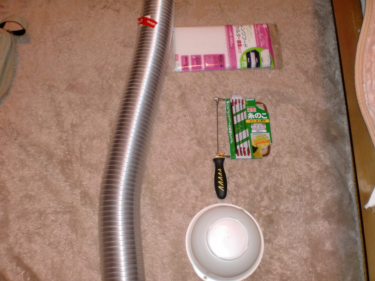 ダンボールに穴をあけ、ダクトを突っ込んだだけです。