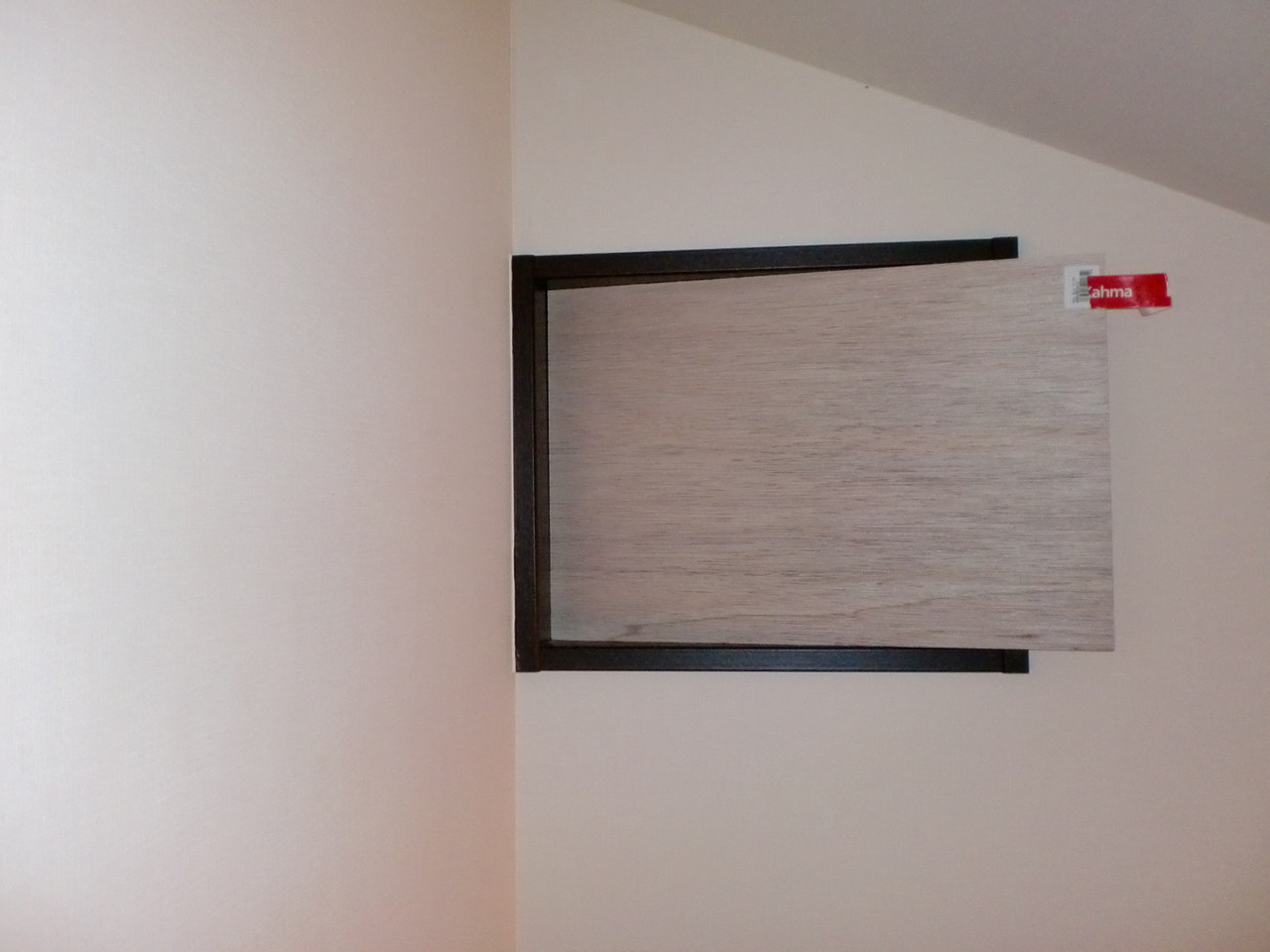 写真は撮り忘れてしましましたが最初に作ったベニヤ板を窓にはめ、換気扇をベニヤ板にはめておきます。