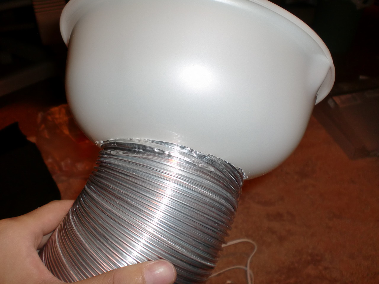 次にダクトとボウルを接続したものを換気扇にくっつけます。