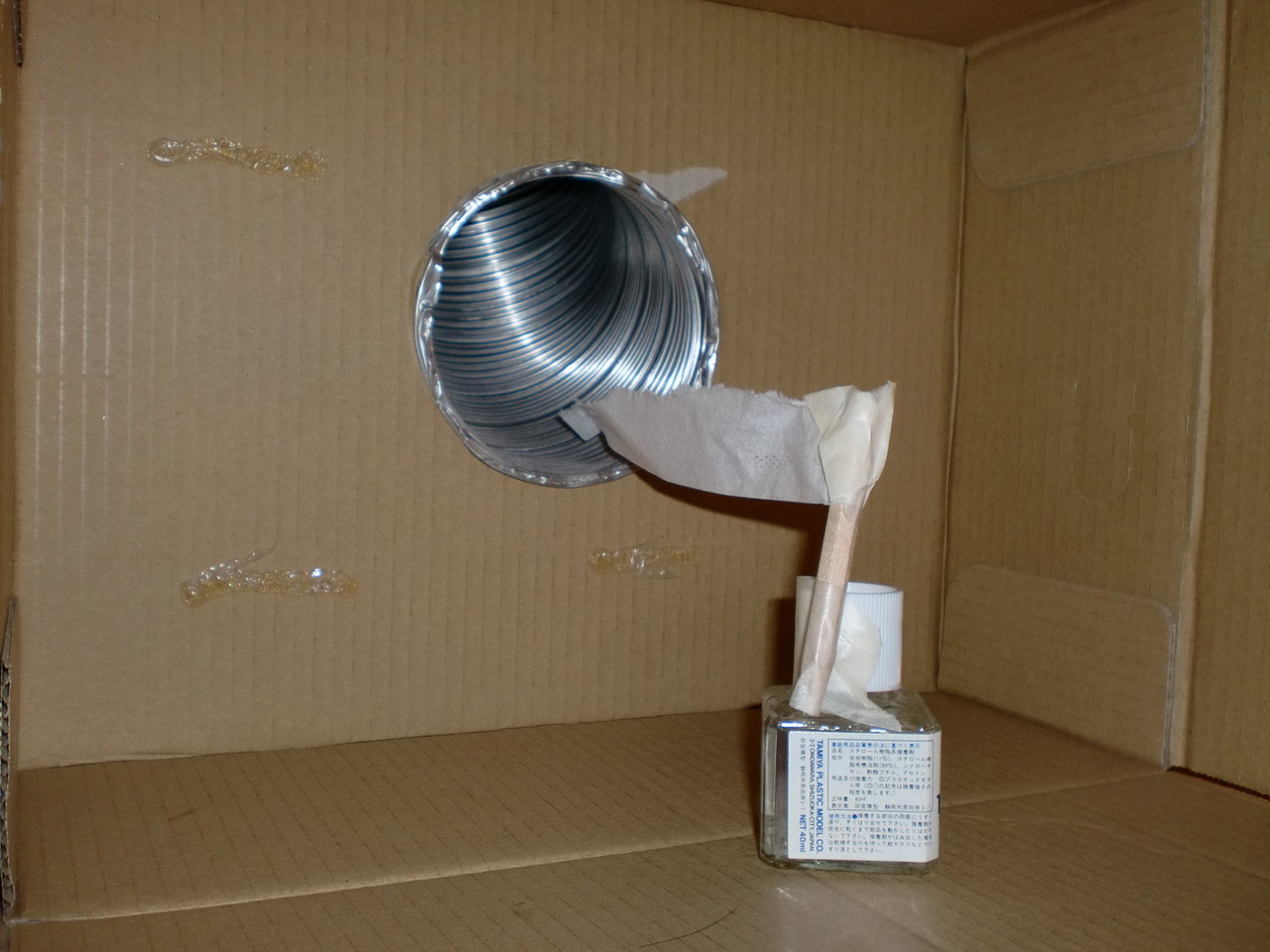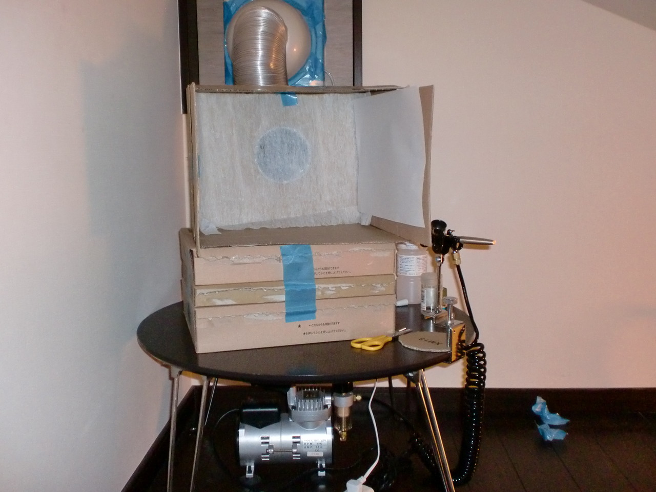 もしこれから塗装ブースを自作される方がいらっしゃいましたら、すこし大きめの換気扇を買うか、吸い込みを良くする構造を考えて作ったほうが良いかもしれません。
