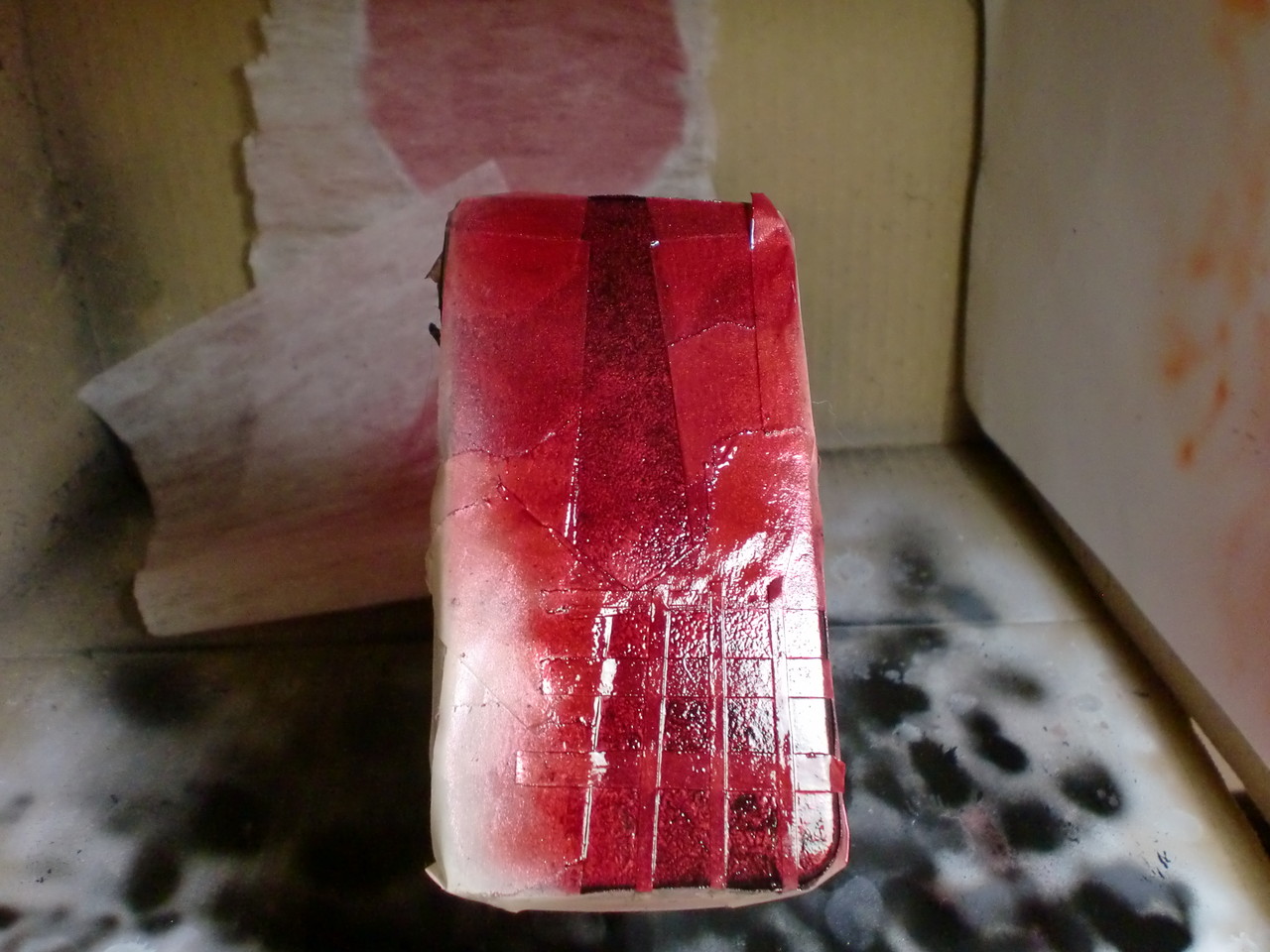 この後、エアブラシの塗料の吹き出し量を多くしたところ吹き返しが起きていました。