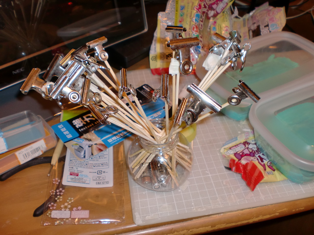 かなり適当にやってたので汚いです。左の方にころがってるのは使わなくなった色鉛筆です。