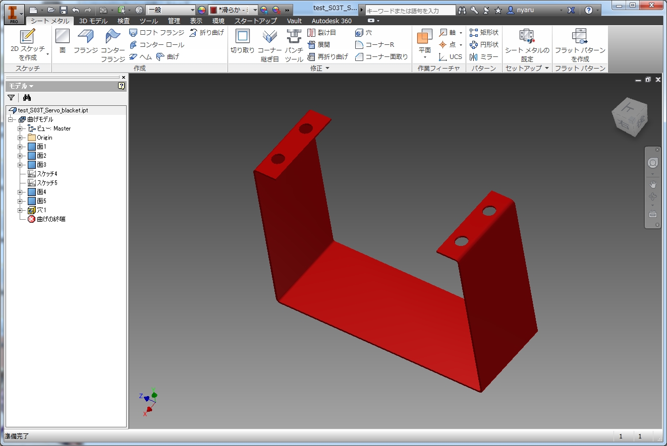 サーボブラケットとアームですが、新規作成の時にシートメタルを選択しています。