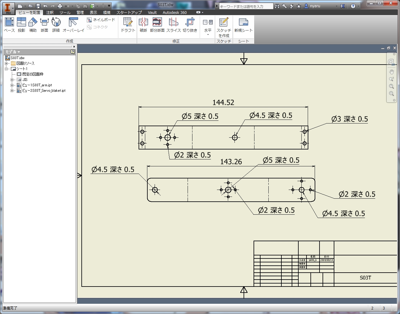 そしてこれに合うようにサーボブラケットとアームを作っていきます。