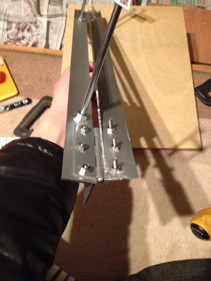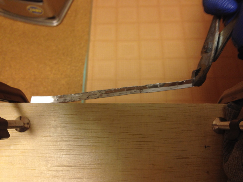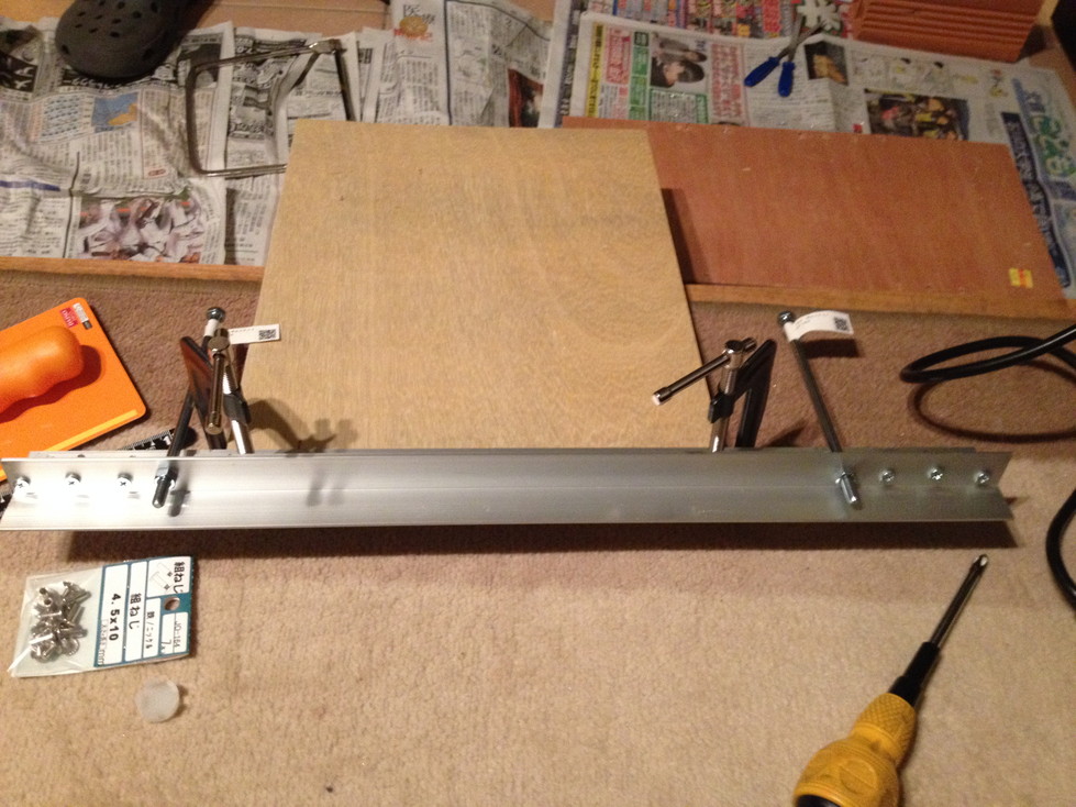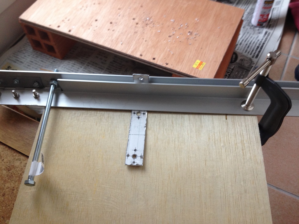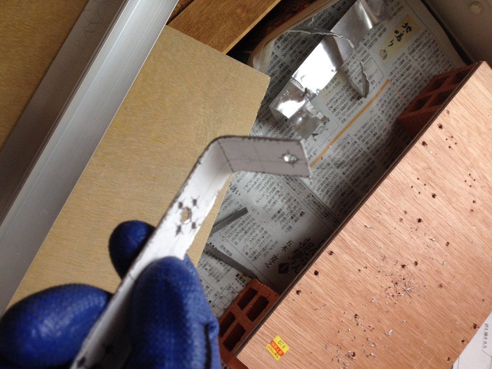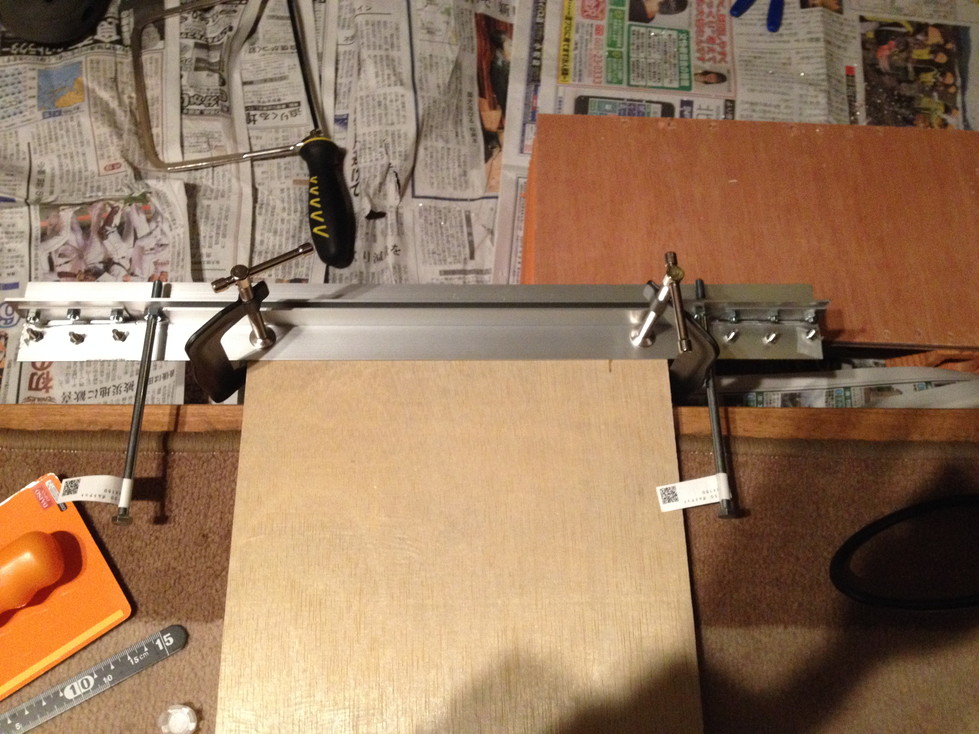 また押さえる部分や曲げる部分が短い場合、これでは曲げることが出来ませんでした。(アルミアングルと全く干渉しない。短い部分を木の板とクランプで挟んで曲げました)
