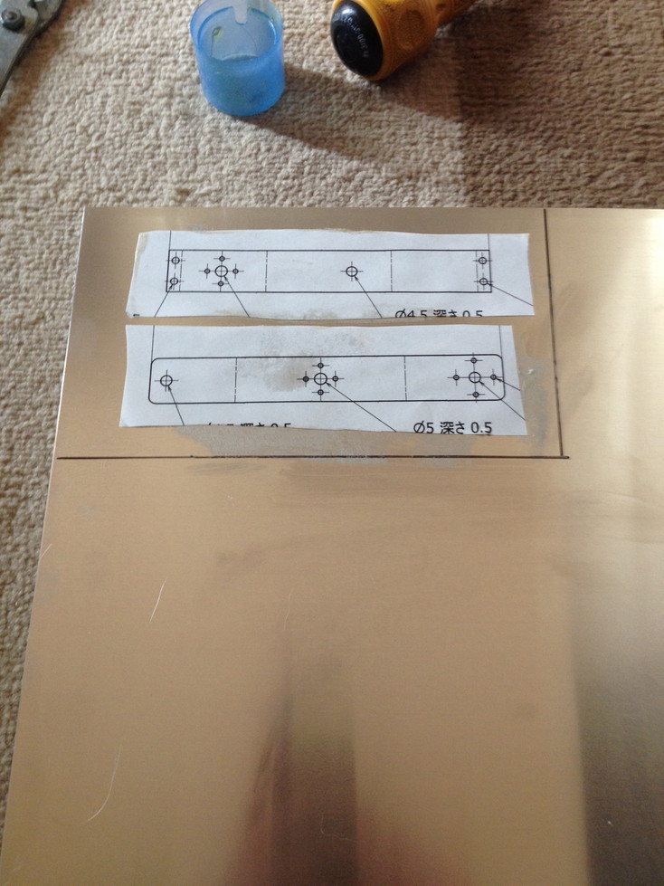 ポンチがズレて結果、穴がズレることが結構ありました。ポンチを打つ位置がわかりやすくなるように印刷する図面の穴部分は十字中心線を入れておくのが重要だなと思いました。