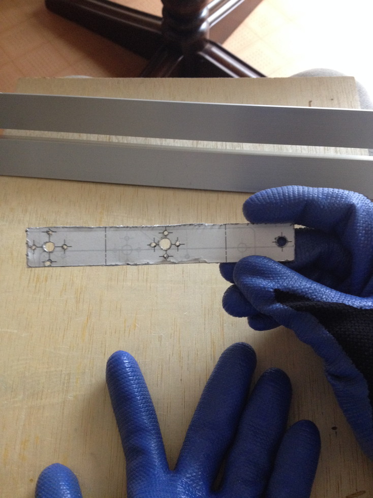 1番最初にやって失敗したことなのですが下のように1枚のアルミに何枚も貼るのはすごく作業がしにくかったです。(何度も曲げることで金属を切断する方法を取ったため。