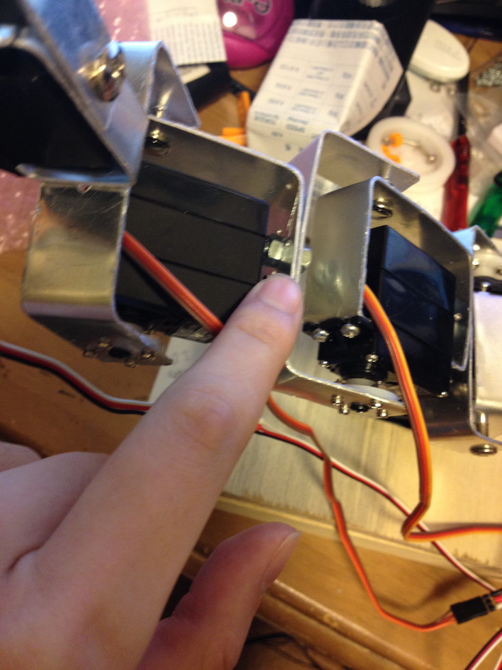 ブラケット曲がってる部分に干渉して締り切らない(サーボとブラケットを固定する部分)、ボルトに干渉し入らない(アームとブラケットの接続部分)、穴がずれててネジが通らない
