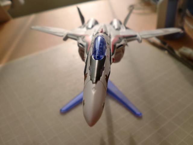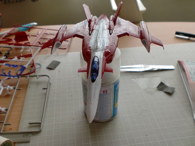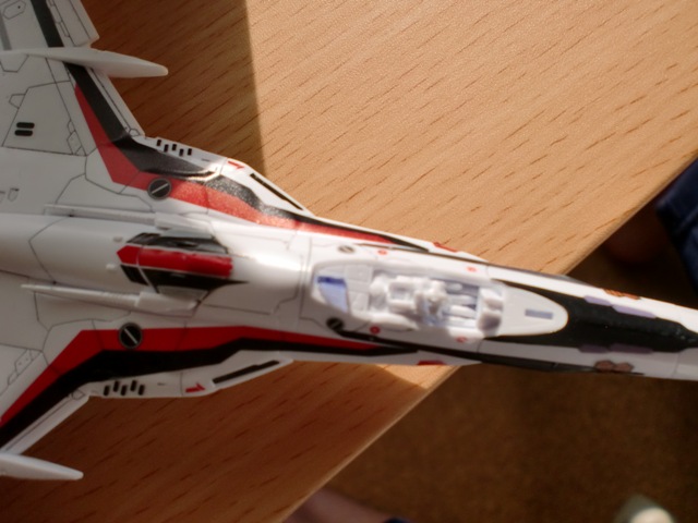 トップコートをバルキリーに吹く前に、つや消しなのでクリアパーツにかけると曇るのではないかと思いコックピットのクリアパーツを外すことにしました。