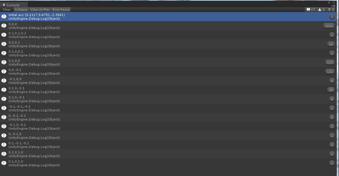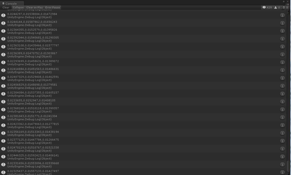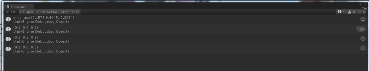 OculusRiftの加速度センサの値をUnityから取れた。 float x = 0, y = 0, z = 0; OVRDevice.GetAcceleration( 0, ref x, ref y, ref z );