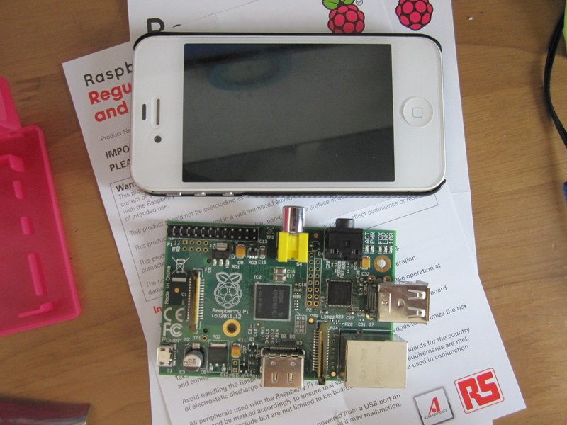ラズベリーパイの電源には手持ちのモバイルバッテリーを使いました。