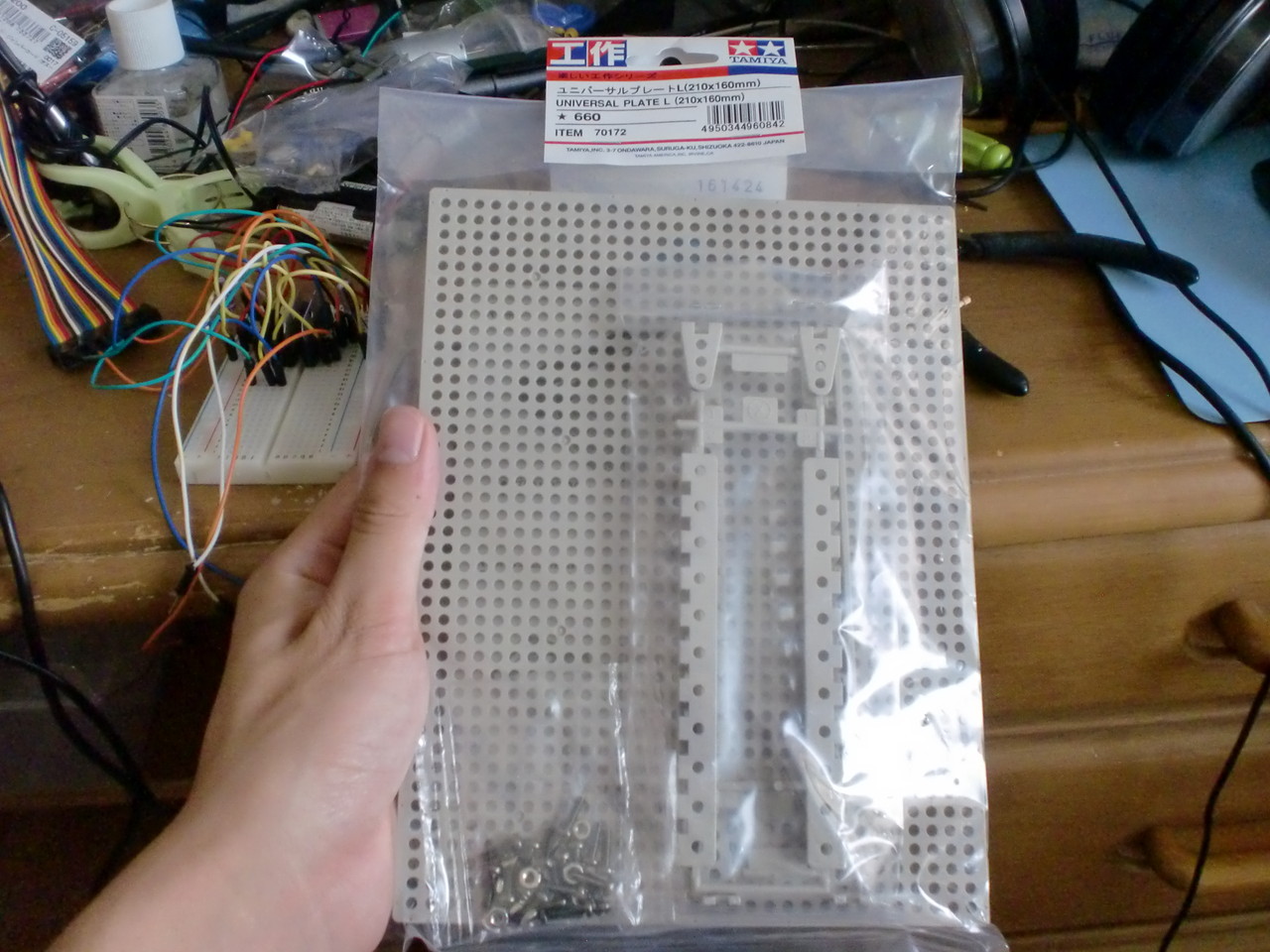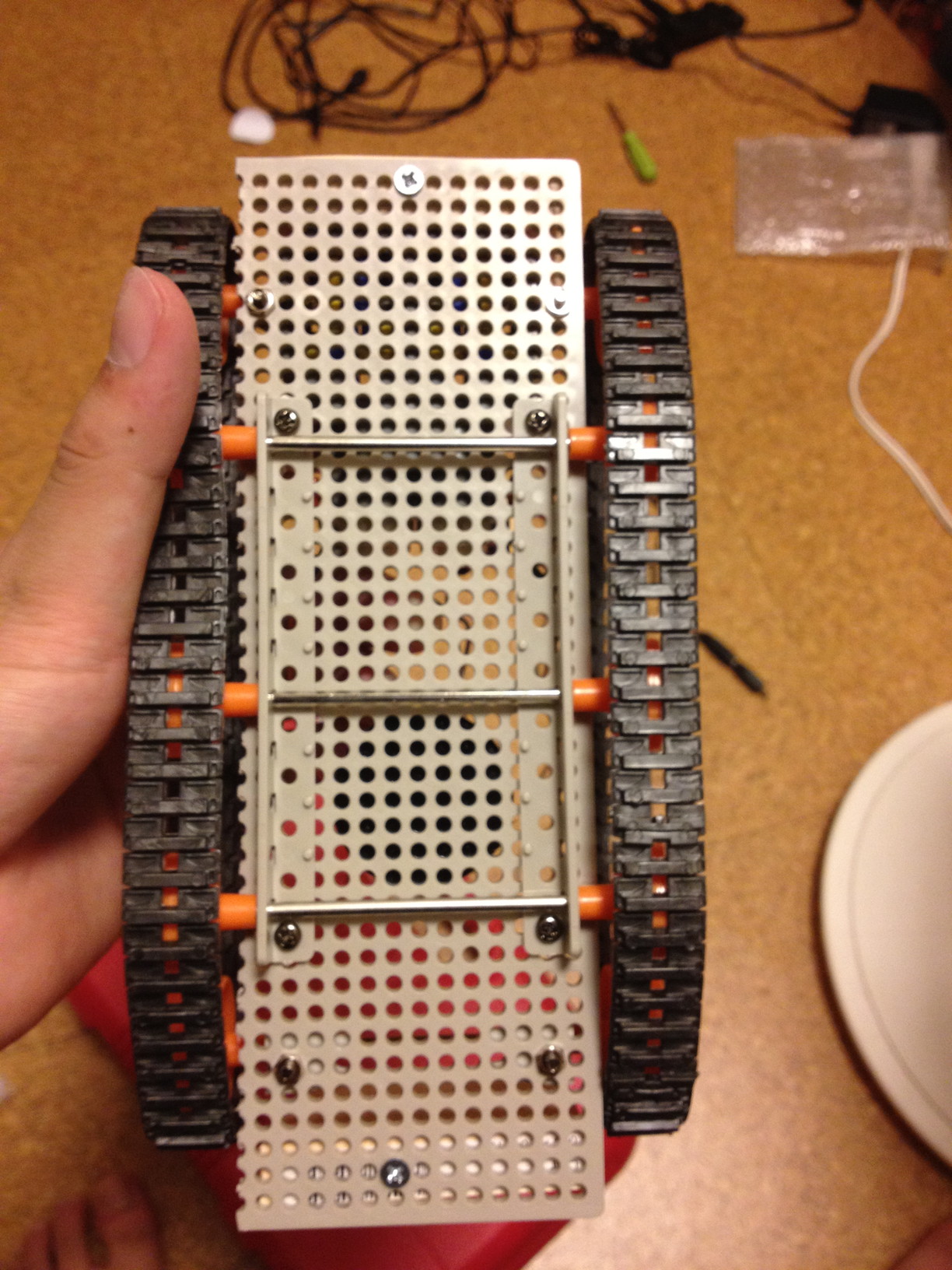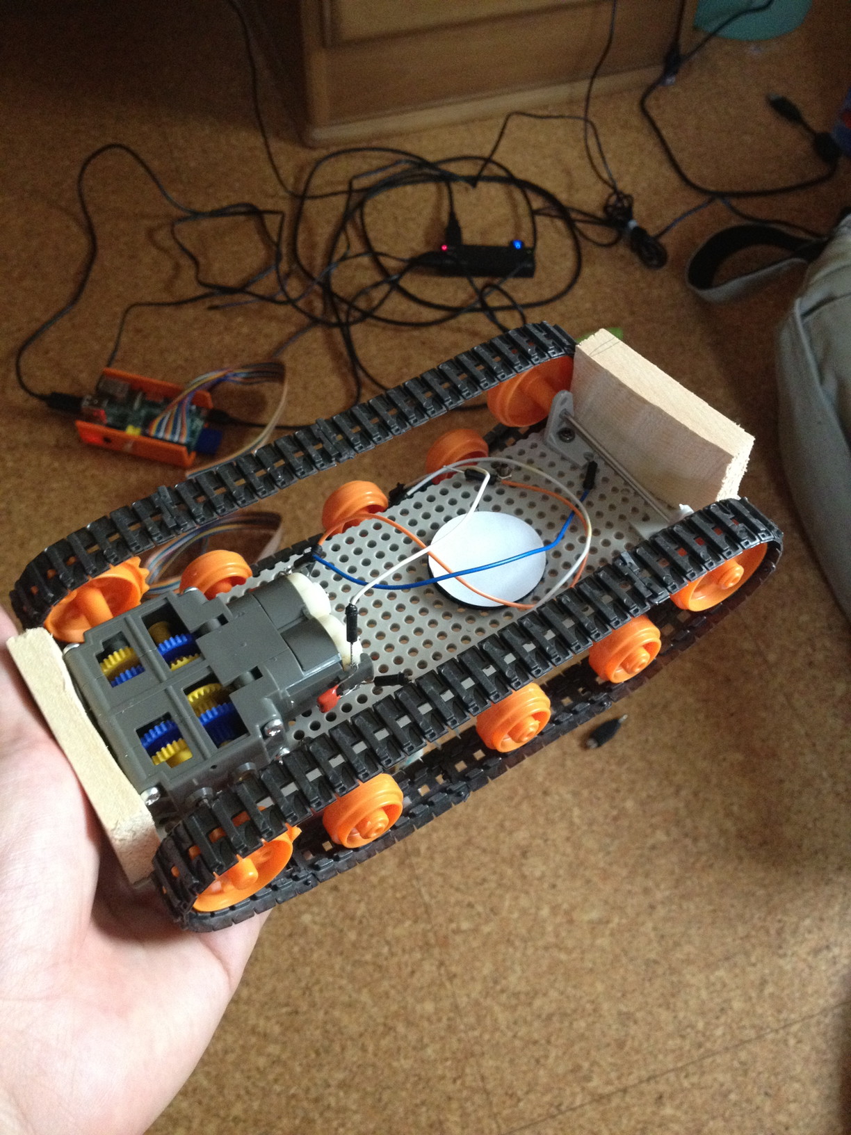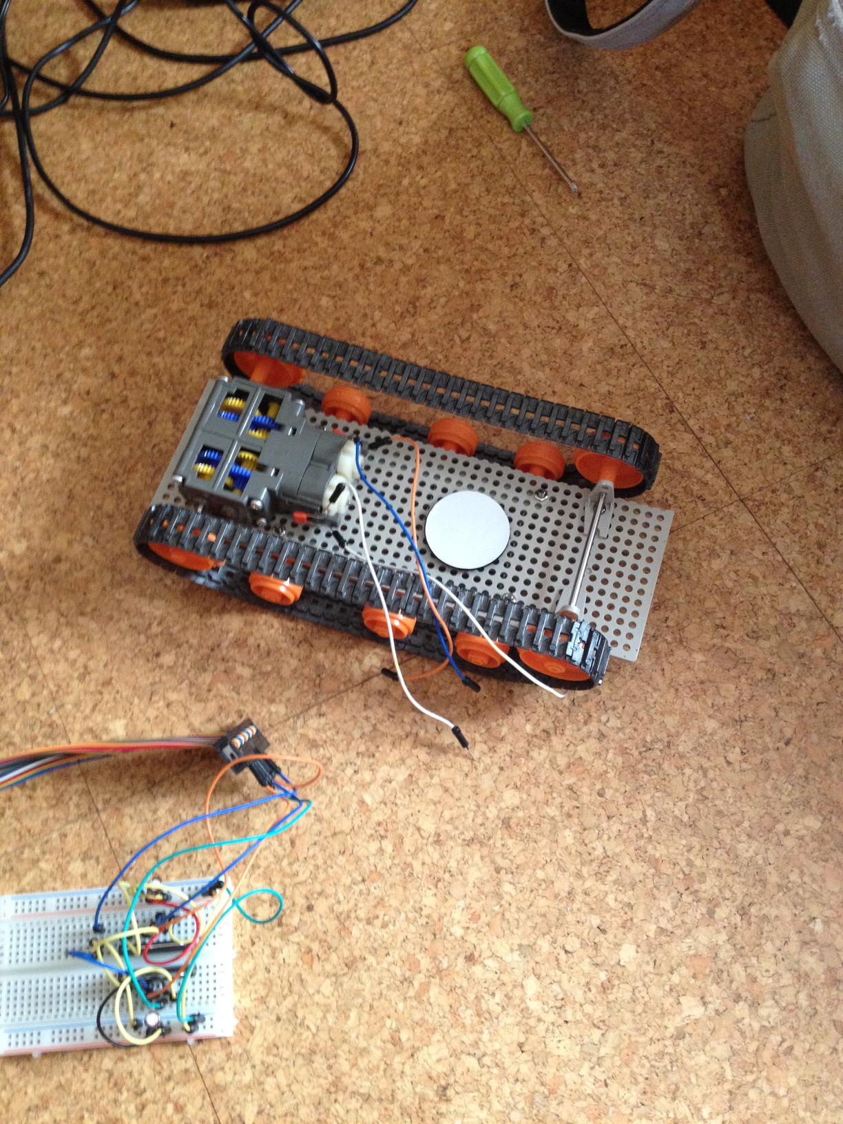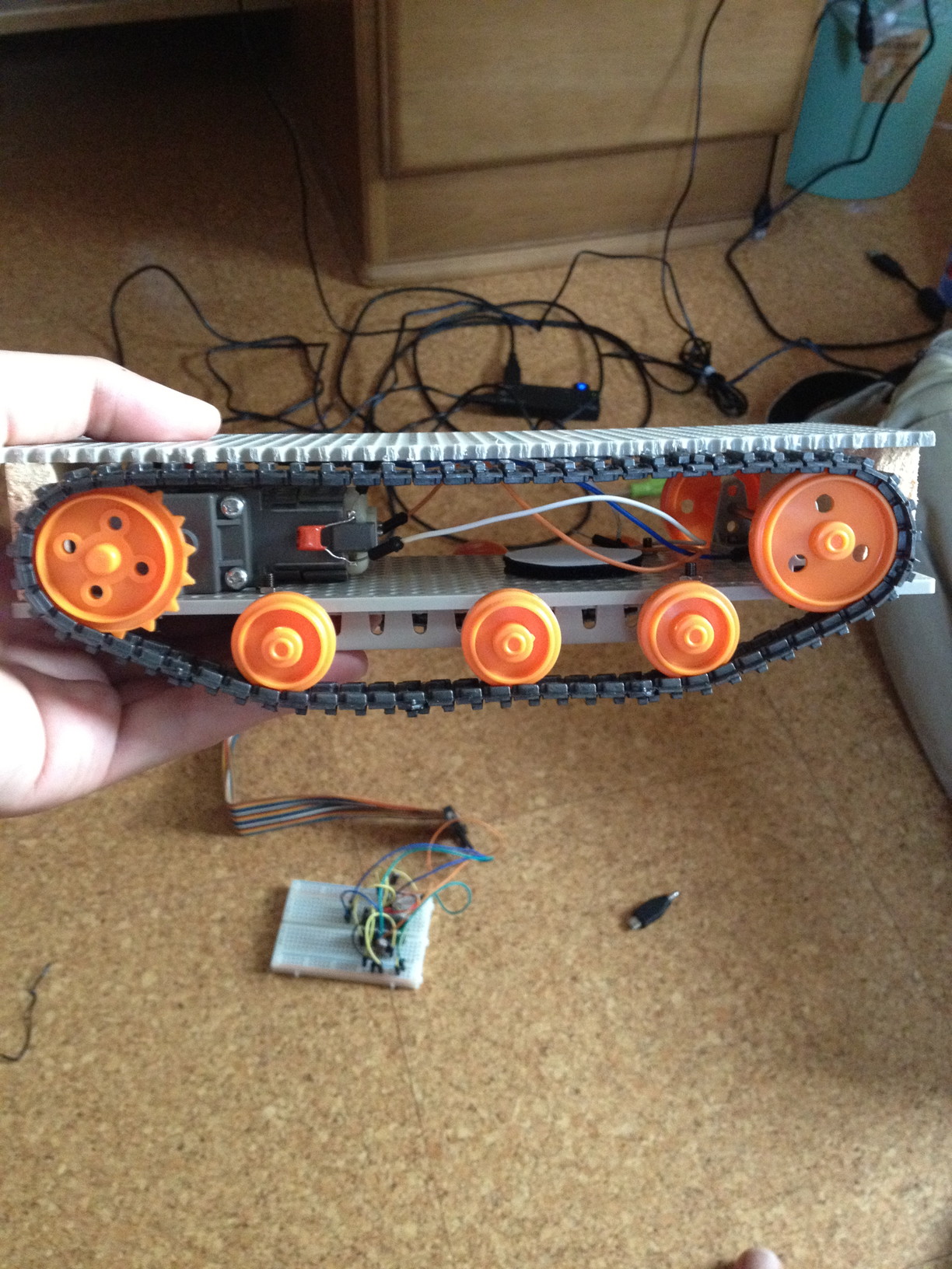 ちなみにハンダ付けはほとんどしてません。LEDの回路だけハンダ付けしましたが、モーターの制御回路は小さめのブレッドボードで作ってます。